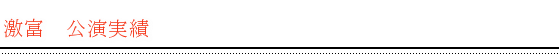 「激富三銃士」。…活躍が目覚しい「中尾周統」「和泉有真」「小川惇貴」をフランキーがそう名付け、フランキー監修の元で三人が様々な企画を自由に提案し実行に移していく。まず自主的に激富ラジオを復活させ、放送も100回を迎えようとしている。また「激富 Next Generation」という若い役者中心の勢いある舞台表現の場を「激富三銃士」を軸に据えて作品を2本製作!平行して過去の激富作品、2005年の「JIN降臨」、2007年の「GAN’S」を本公演でリメイク。この再演を行う事へのハードルを若い力の元で果敢にチャレンジし、動員と完成度で見事にそれを超え、いよいよ激富は新時代を迎える・・・そして2016年、劇団アトリエ「GEKITONG-SPACE(G-SPACE)」を事務所兼稽古場として設立。このG-SPACEにて劇団員企画によるイベント公演「GEKITONG-SPACE OFFICIAL EVENT」をスタート。さらに「激富三銃士」から「中尾周統」をピックアップし、2017年はこの中尾主演の2作品を本公演として上演!新しい出会いの元、「Franky.ism」はベテランと若い力が見事に融合させ、フランキー自身もまた演出だけでなく再びステージに上がって芝居を追求。- 2018年、激富新時代は初の劇団単体による東阪公演「『ダッシュ!!! ~ Take by force ~』を製作しようとしている・・・